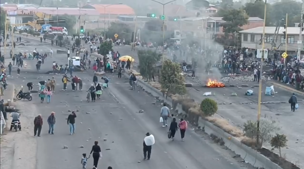 Cerca de la 18:00 de este sábado la policía intentó levantar el punto de bloqueo instalado en el rio Khora, en Vinto, en la carretera al occidente del país, donde el viernes por la noche, los bloqueadores agredieron a cuatro policías heridos que eran evacuados de Parotani y volcaron una ambulancia.